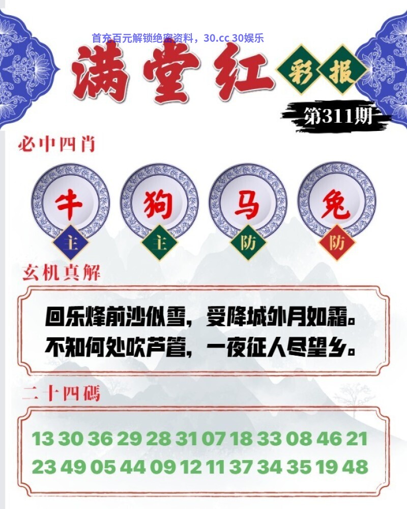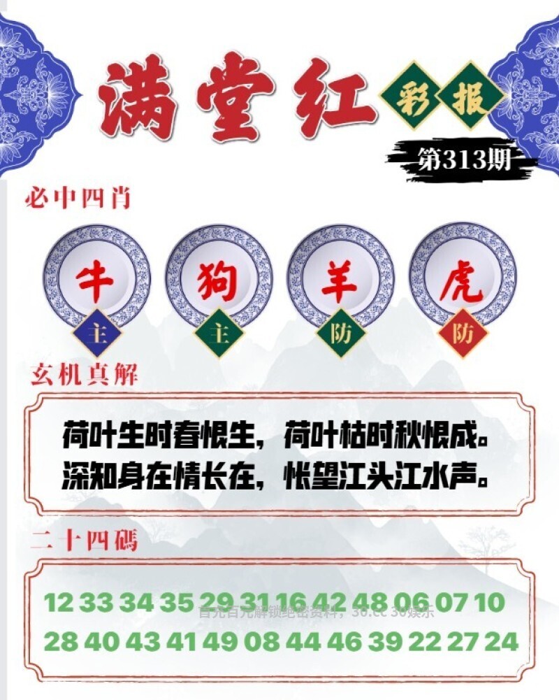 311期:*绝杀五码*→【01.06.30.37.39】开:蛇37